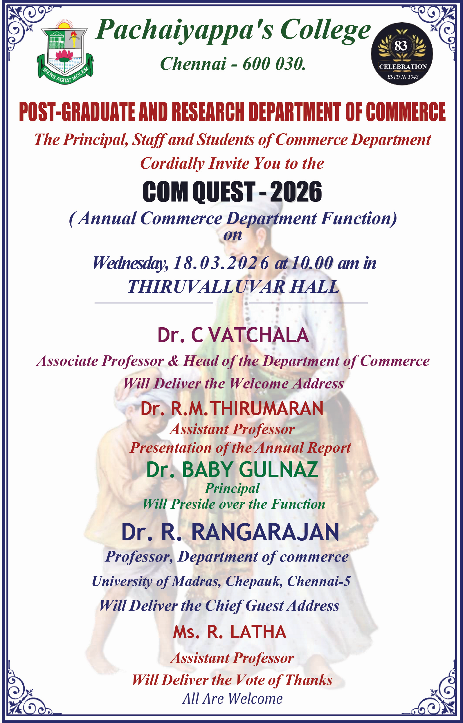 programmes at Pachaiyappa’s College. Pachaiyappa’s College is one of the oldest colleges in