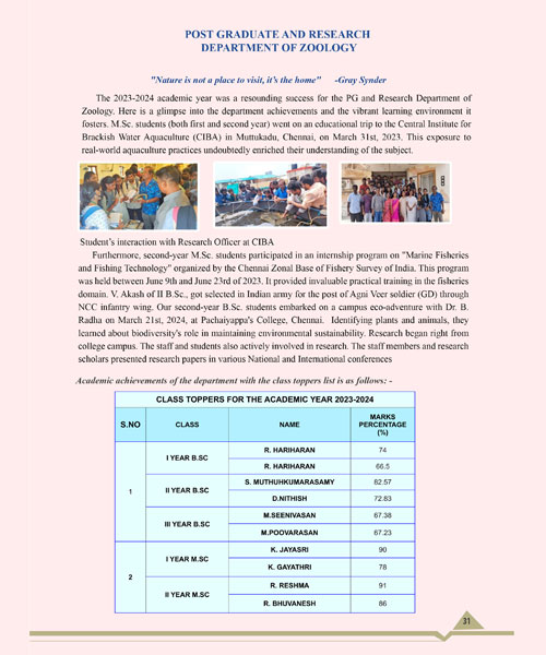 next year ie.. in 1958, M.Sc. degree course in Zoology, was the first science department of our