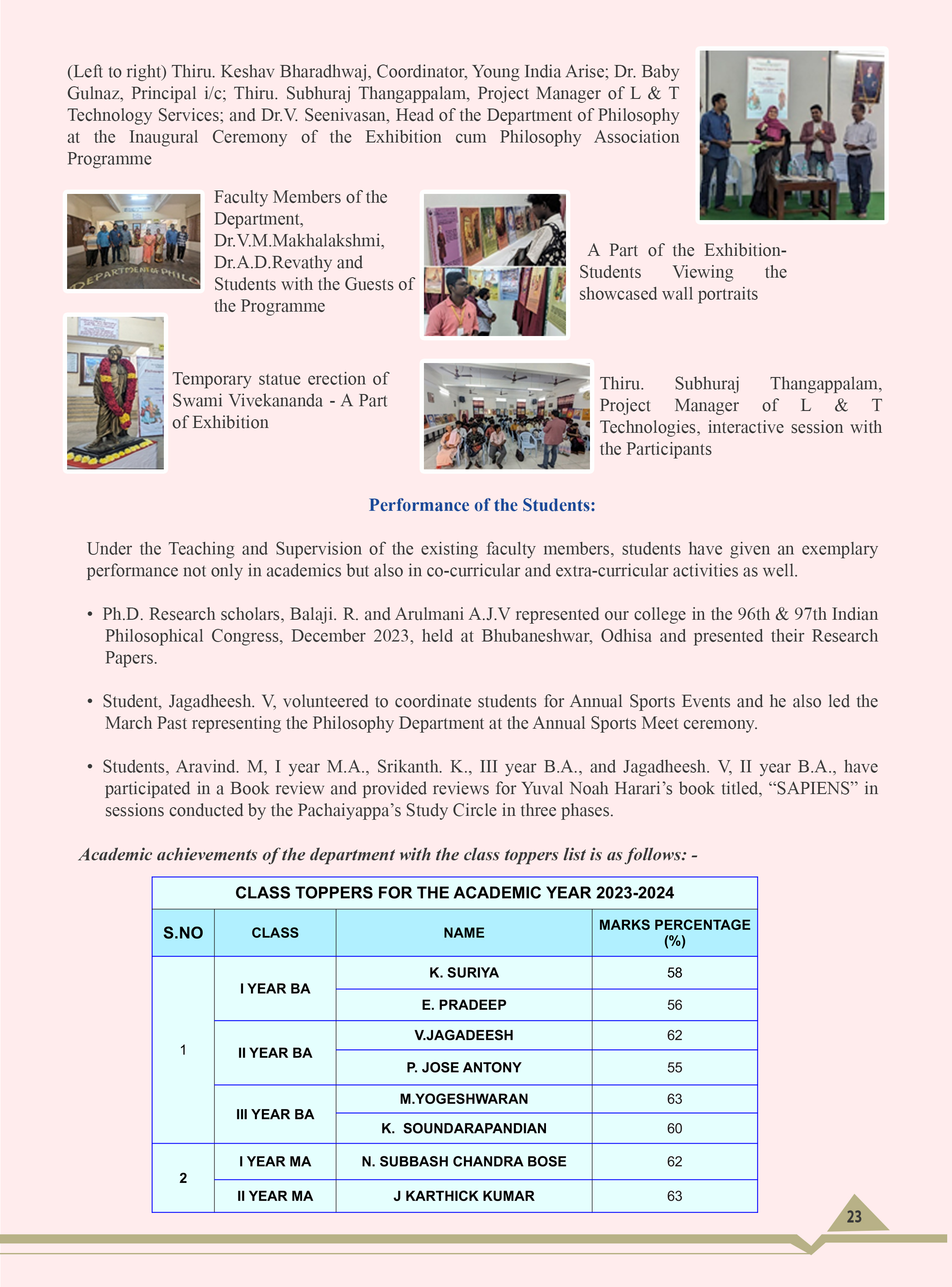 Professor, Mr.Muthaiyan (Guest Lecturer, Dr.M.Rajesh (Guest Lecturer) of the department supported the academic programme.